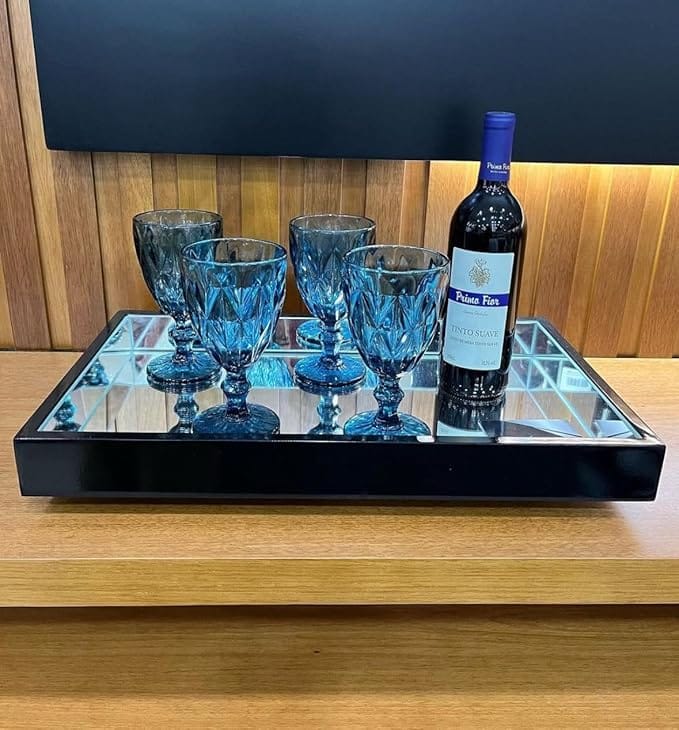 Bandeja Decorativa Laqueada com Fundo Espelhado