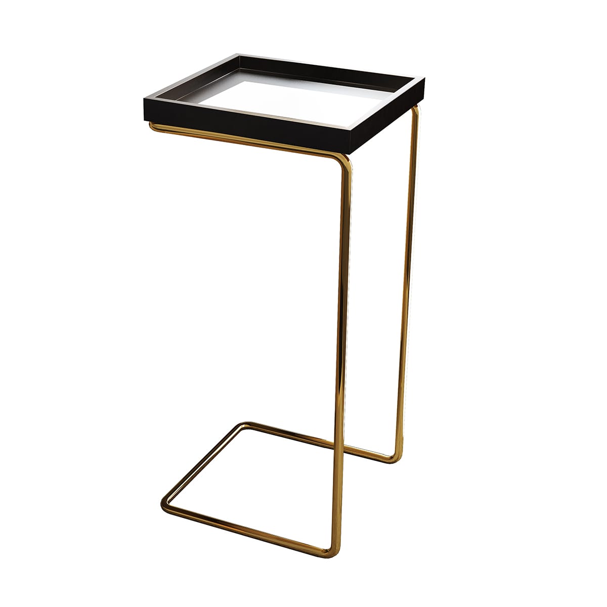 Mesa de Apoio Lateral Espelhada para Sofá – Pé Dourada – Preto