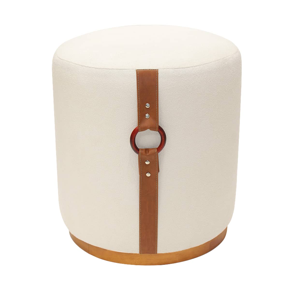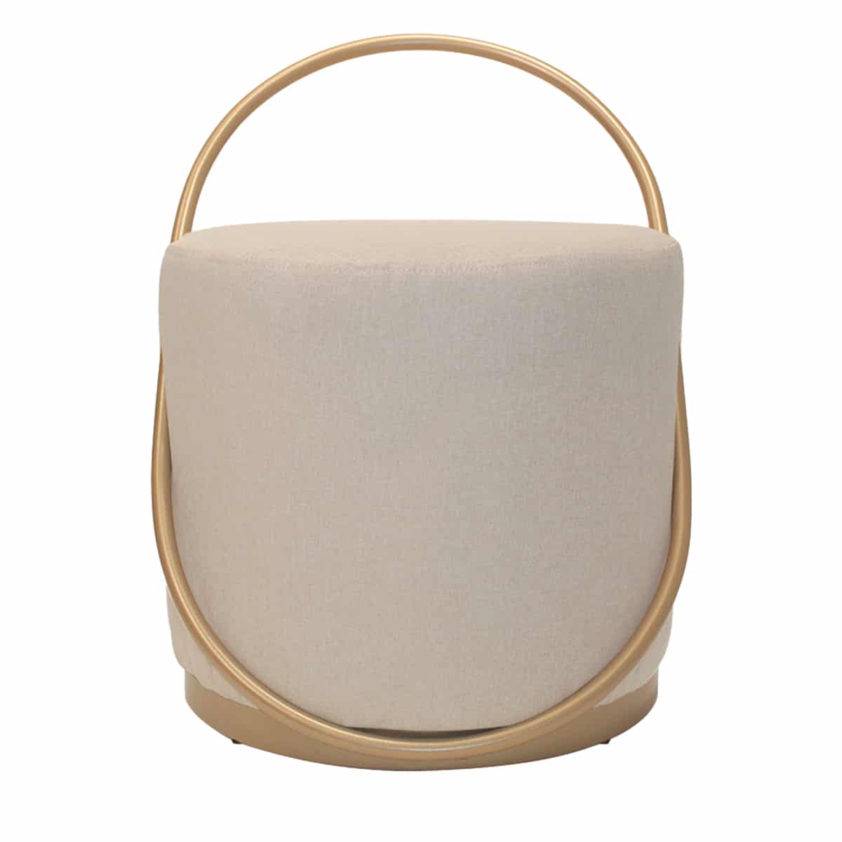 Puff Redondo Estofado Em Linho Base Dourada Metal – Lizard