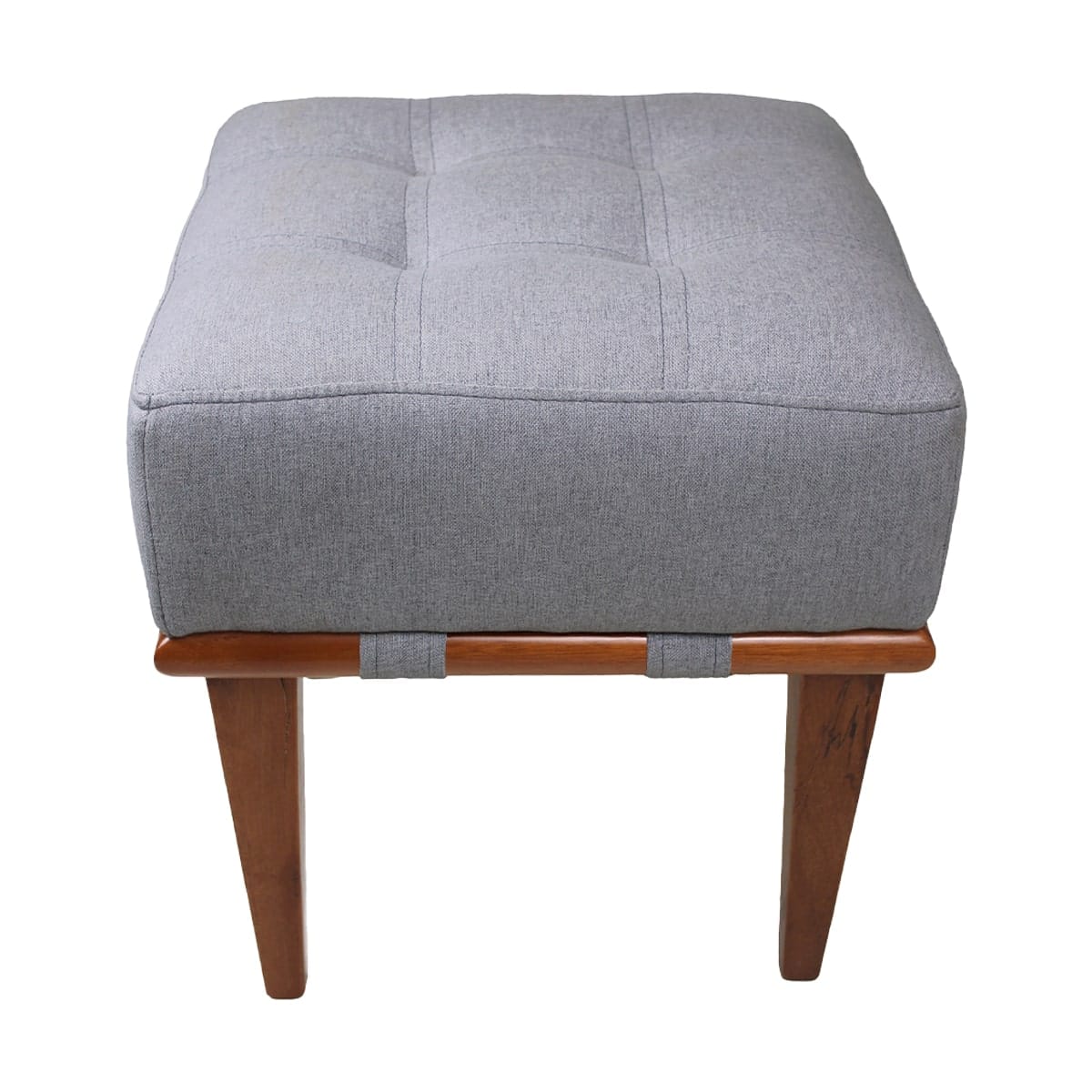 Puff Estofado Tecido em Linho Base em Madeira Maciça- Cronos