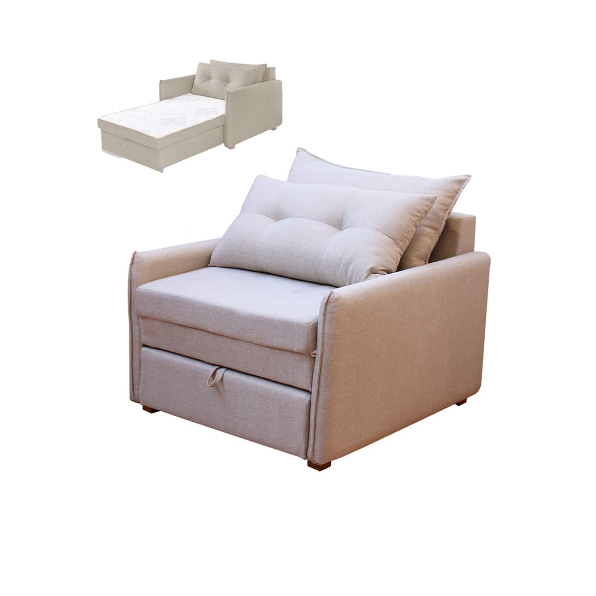 Sofá Cama Montreal Solteiro Estofado Com Almofadas