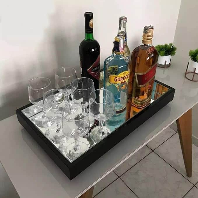 Bandeja Decorativa Laqueada com Fundo Espelhado