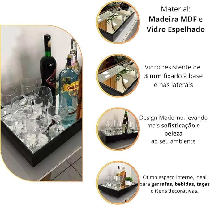 ✔ Fundo Espelhado – Superfície em vidro espelhado, que proporciona um efeito visual luxuoso.