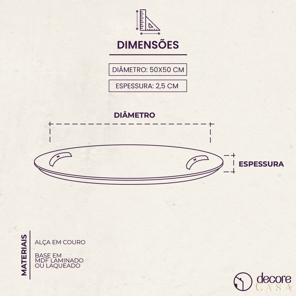 A Bandeja Maré é uma opção encantadora e prática para servir o café da manhã com estilo. Seu design único combina beleza e funcionalidade, sendo feita com madeira laminada de alta qualidade. Com uma base reta e lisa, ela oferece estabilidade para copos, xícaras e outros itens de decoração. Sua alça é confeccionada em couro resistente e de alta qualidade, proporcionando um toque de elegância e sofisticação. Versátil, a Bandeja Maré pode ser utilizada em diferentes ambientes, como sala de jantar, quarto, cozinha ou área externa. Além de ser perfeita para servir um delicioso café da manhã na cama, ela também é uma ótima opção para servir lanches, chás e até mesmo jantares. Com a Bandeja Maré, você terá momentos especiais com praticidade e estilo. OBS: Pode haver uma pequena diferença de cor de acordo com sua tela. Especificações técnicas: Altura: 2,5 cm Largura: 50 cm Profundidade: 50 cm Peso: 2 kg Material da Bandeja: MDF laminado Acabamento: Verniz fosco Material da alça: Couro reforçado (preto ou Marrom) Cores disponíveis: Ártico, Castanho, Ébano Ideal para servir café da manhã, lanches e chás Perfeita para decoração na cozinha ou sala de jantar Cuidados: Para preservar a peça, é importante seguir alguns cuidados, como realizar limpeza regular com um pano macio e levemente umedecido. Evite exposição à água ou umidade, e nunca utilize objetos cortantes, ásperos ou abrasivos. Armazene a bandeja em local seco e arejado para maior durabilidade.