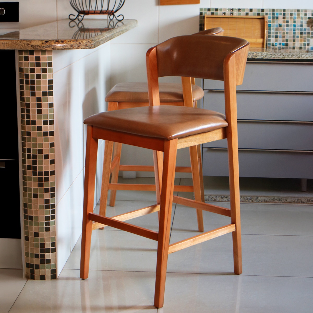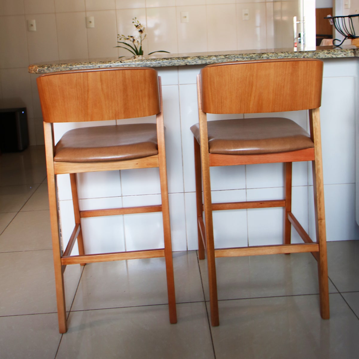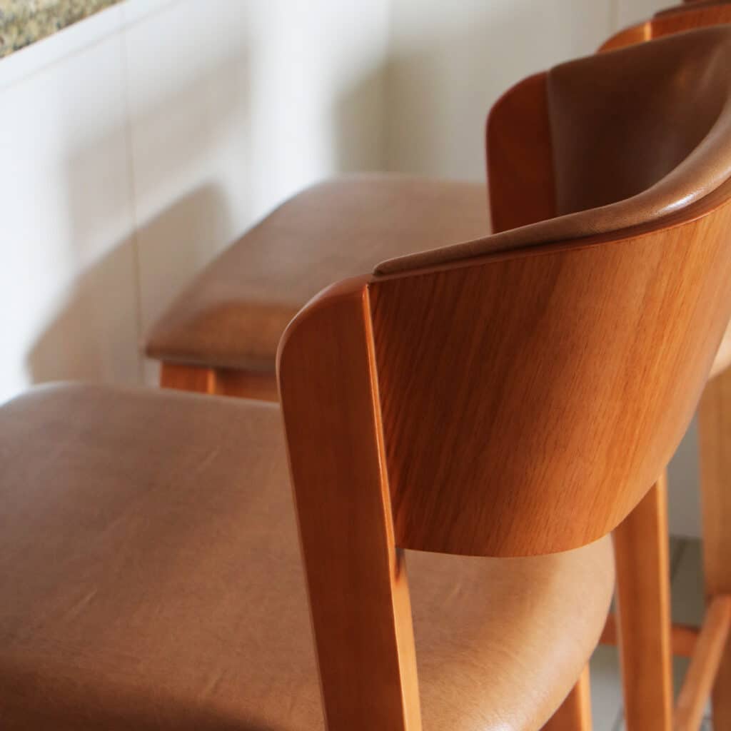 A Banqueta Viena foi pensada justamente para resolver essa necessidade com elegância e funcionalidade. Ela combina a resistência da madeira de eucalipto com o conforto do assento em espuma D-28, além de um visual sofisticado que valoriza cozinhas, bancadas e áreas gourmet. Seu design com encosto oferece mais apoio no uso diário, enquanto o acabamento em Couríssimo marrom ou Linho Cru permite uma composição versátil e refinada, fácil de harmonizar com diferentes estilos de decoração. É uma peça que não serve apenas para sentar-se, mas para transformar o ambiente em um espaço mais bonito, convidativo e completo.