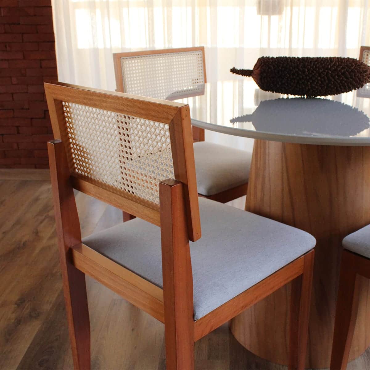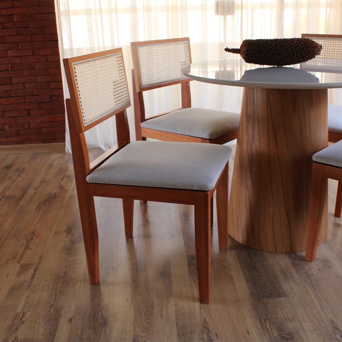 Cada detalhe foi pensado para oferecer qualidade e harmonia, destacando-se pela combinação do ratan com a madeira — um toque artesanal que se adapta facilmente a estilos como escandinavo, boho ou contemporâneo.