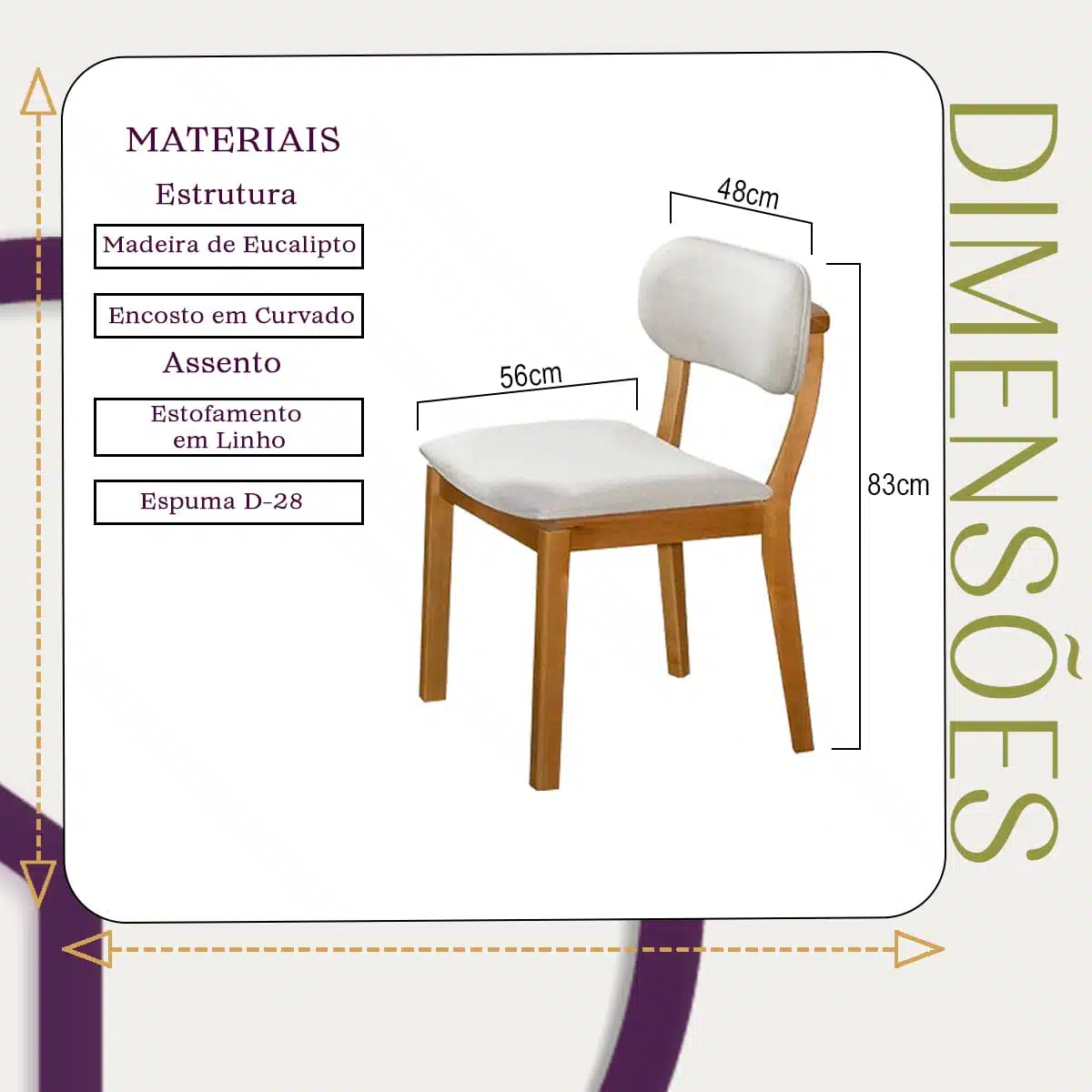Assento e encosto: estofados em linho ou couro sintético (dependendo da variação escolhida)