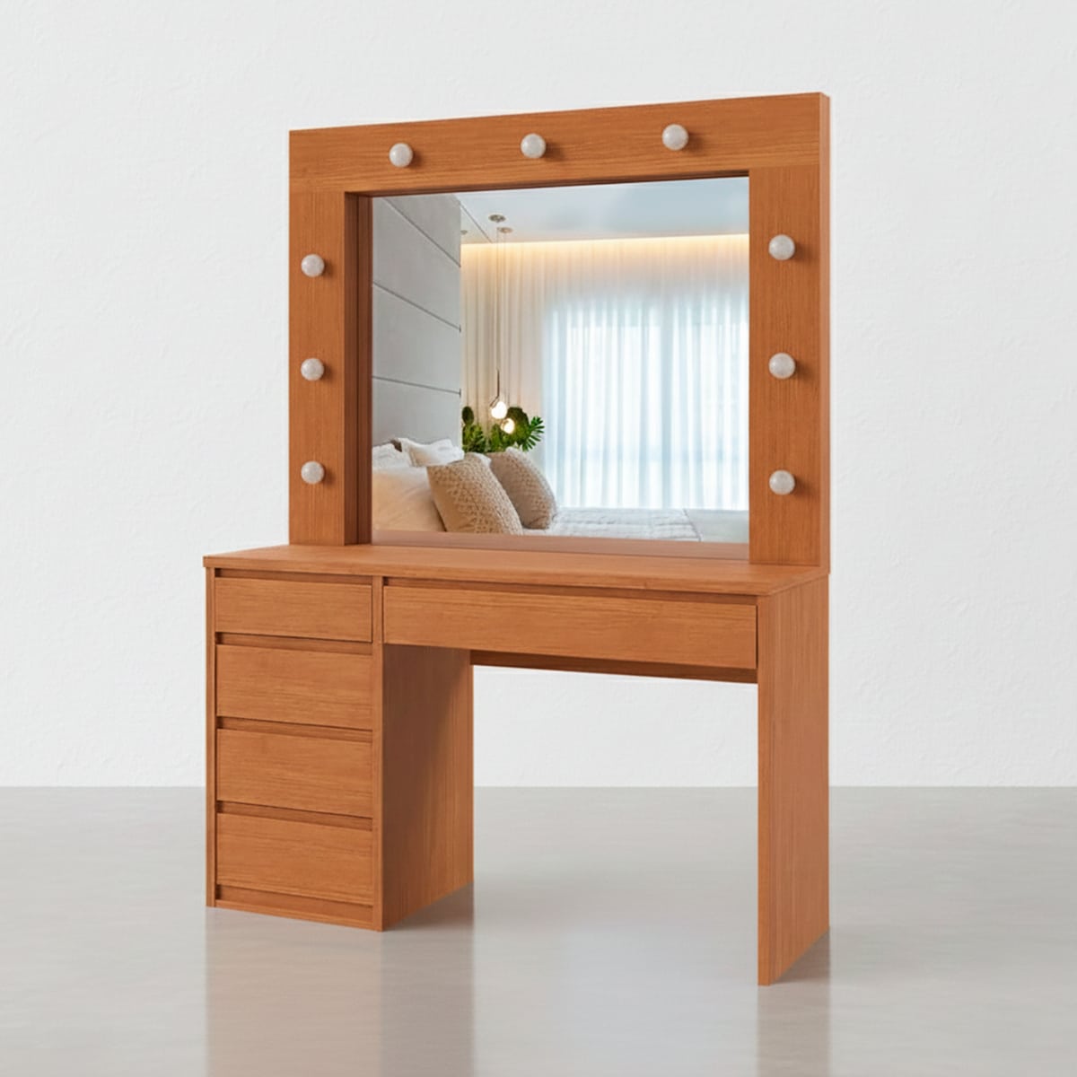Equipado com espelho amplo e 9 lâmpadas LED bivolt (quente e fria), o Camarim Anne garante iluminação perfeita para a sua rotina, seja de dia ou à noite. Ideal para dormitórios, closets ou estúdios de beleza, o Camarim Anne combina um visual sofisticado com a robustez do MDF de alta qualidade, sendo uma peça durável e cheia de estilo.