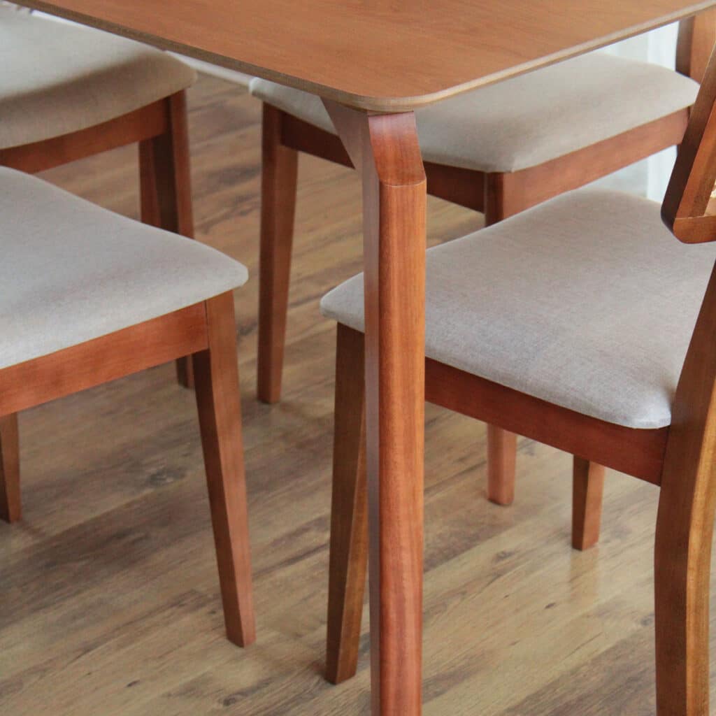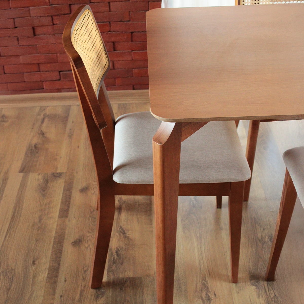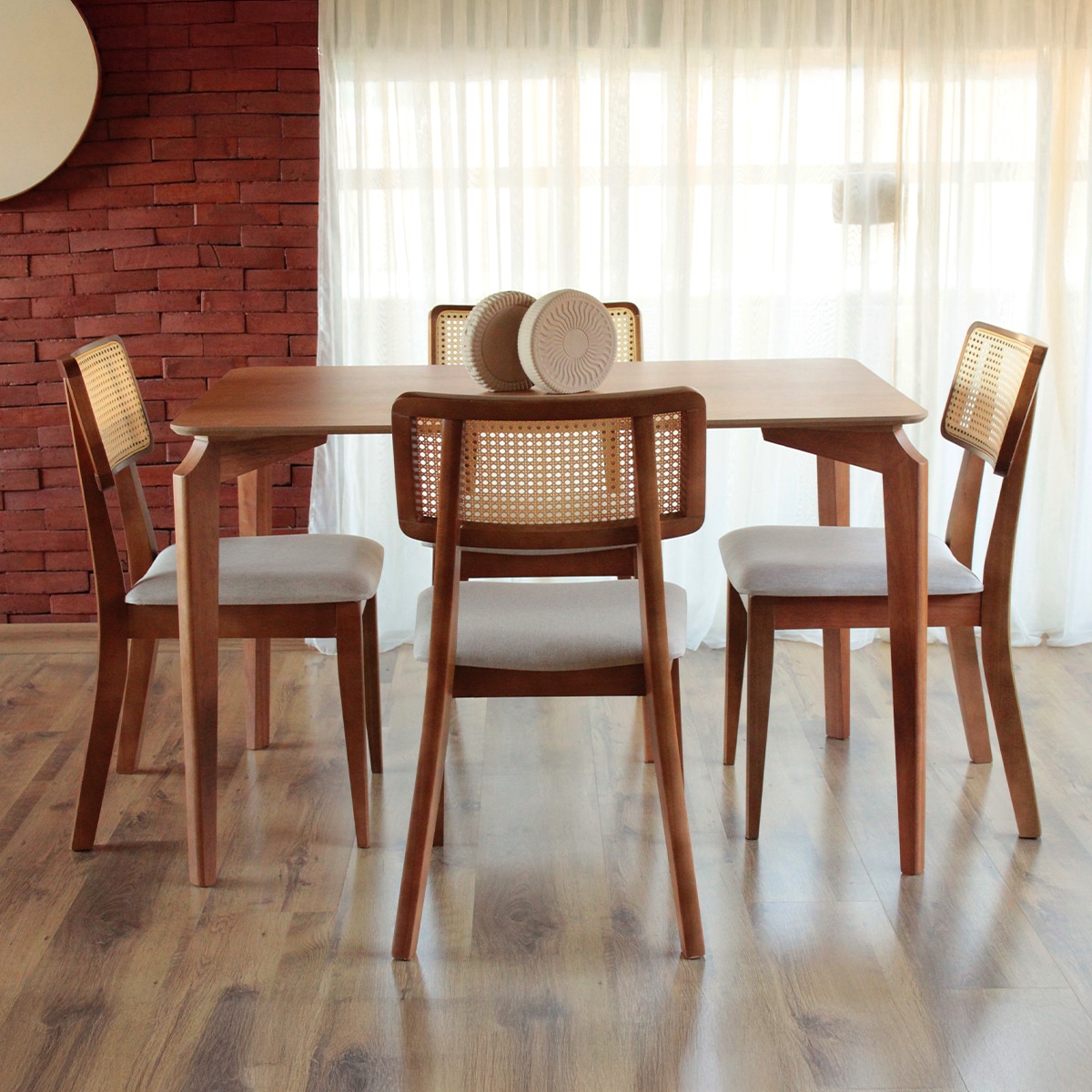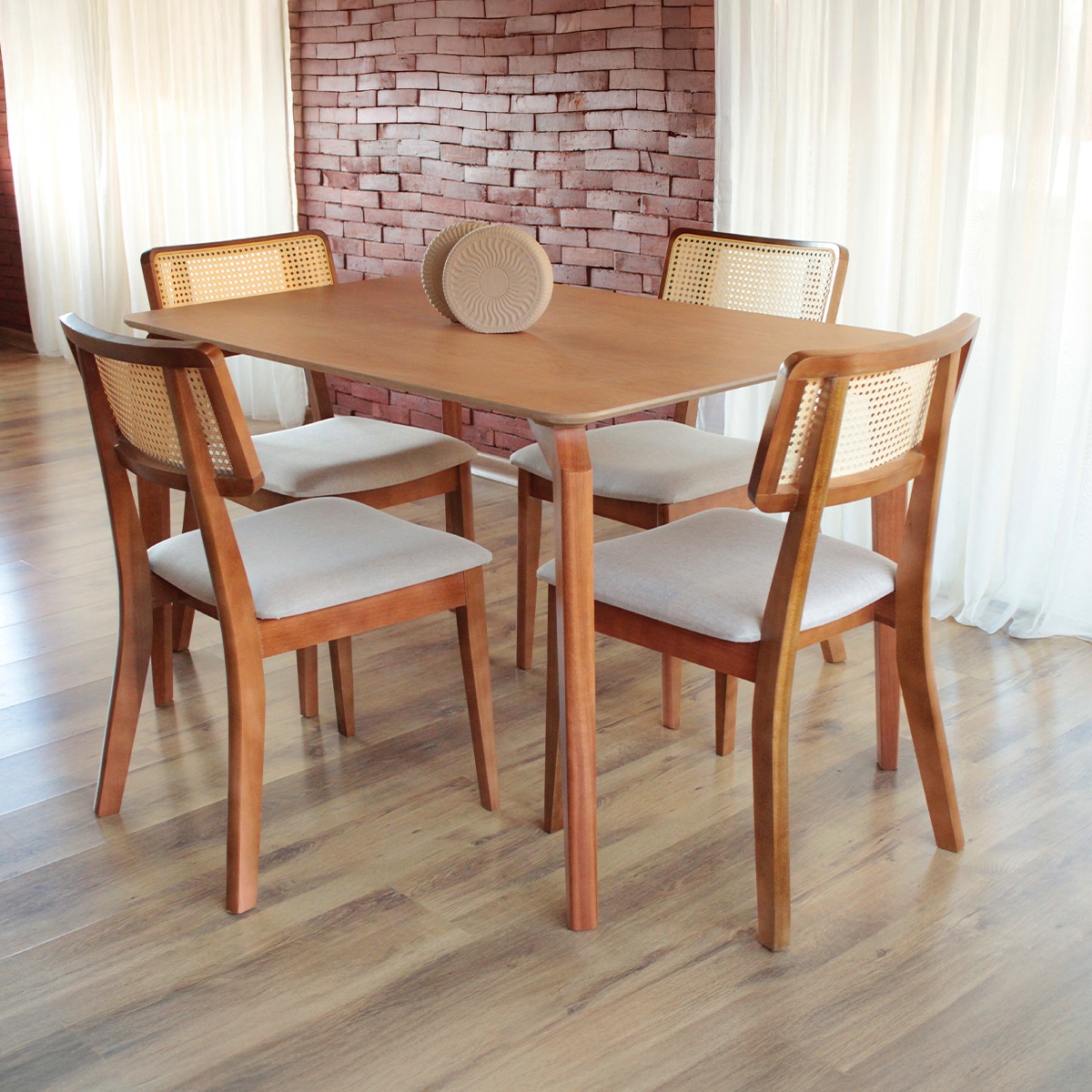 Conjunto de Jantar Completo com Mesa e 4 Cadeiras Estofadas