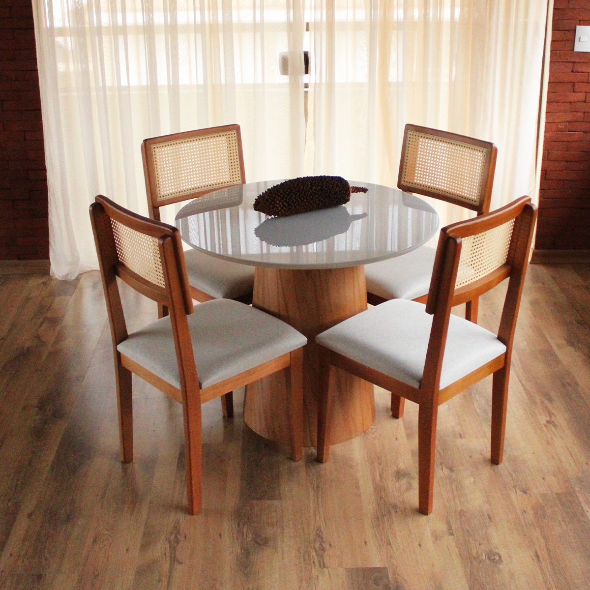 Pensando nisso, este conjunto de sala de jantar foi feito para unir design, conforto e praticidade em um visual sofisticado e atemporal. O resultado é um conjunto que valoriza o ambiente e entrega presença, sem pesar no espaço.