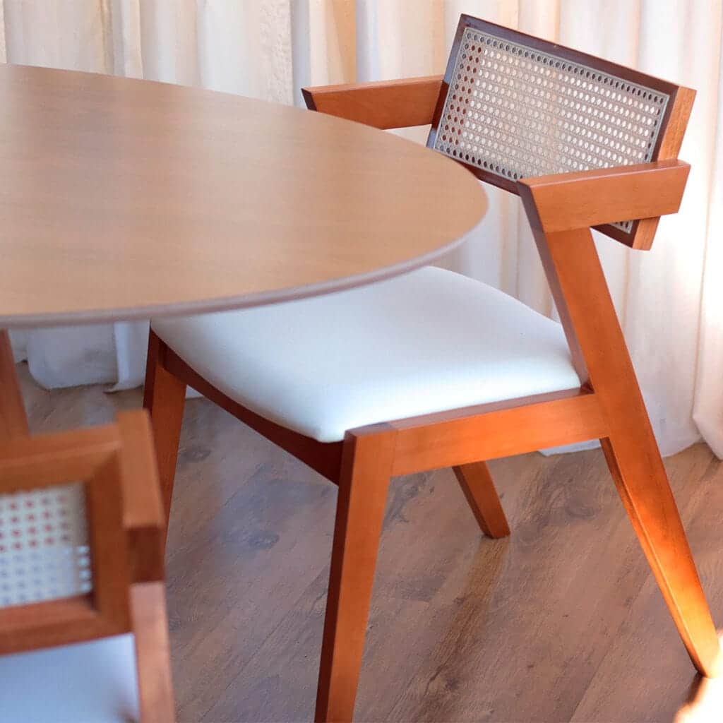 Cadeira Estofada em Linho Clara Encosto Rattan – Lilia