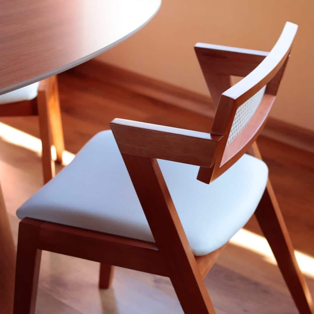 Cadeira Estofada Ergonômica Madeira Natural – Emily