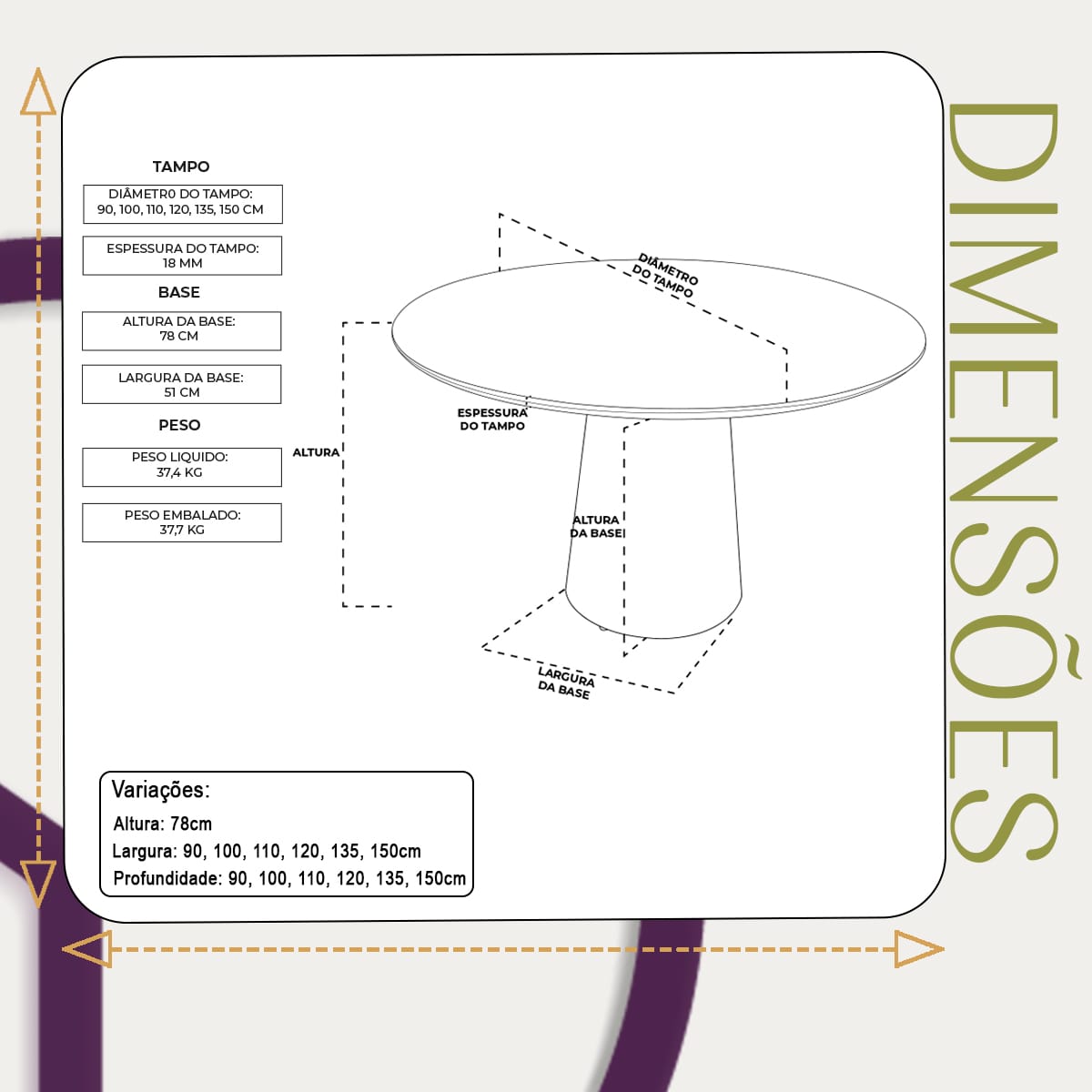 | Tamanho da Mesa | 100cm, 120cm, 135cm, 90cm |