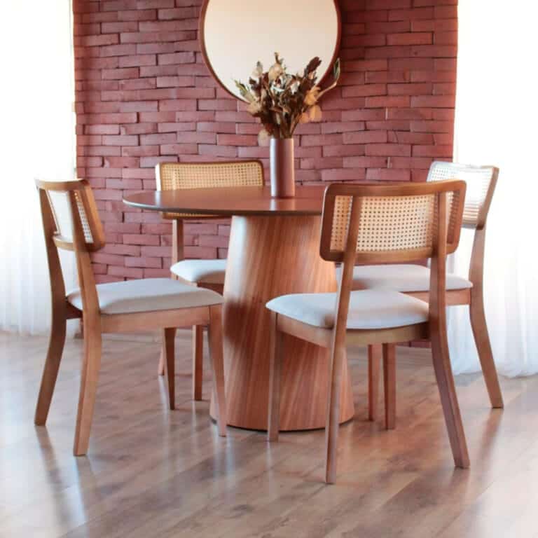 04 Cadeiras Lilia em Madeira Maciça com Assento Estofado e Encosto em RattanSe você busca um conjunto de sala de jantar que una conforto, beleza e durabilidade, este é o momento ideal para renovar seu ambiente. Cada detalhe foi pensado para transformar suas refeições em momentos especiais, valorizar a decoração e oferecer mais qualidade de vida no dia a dia.