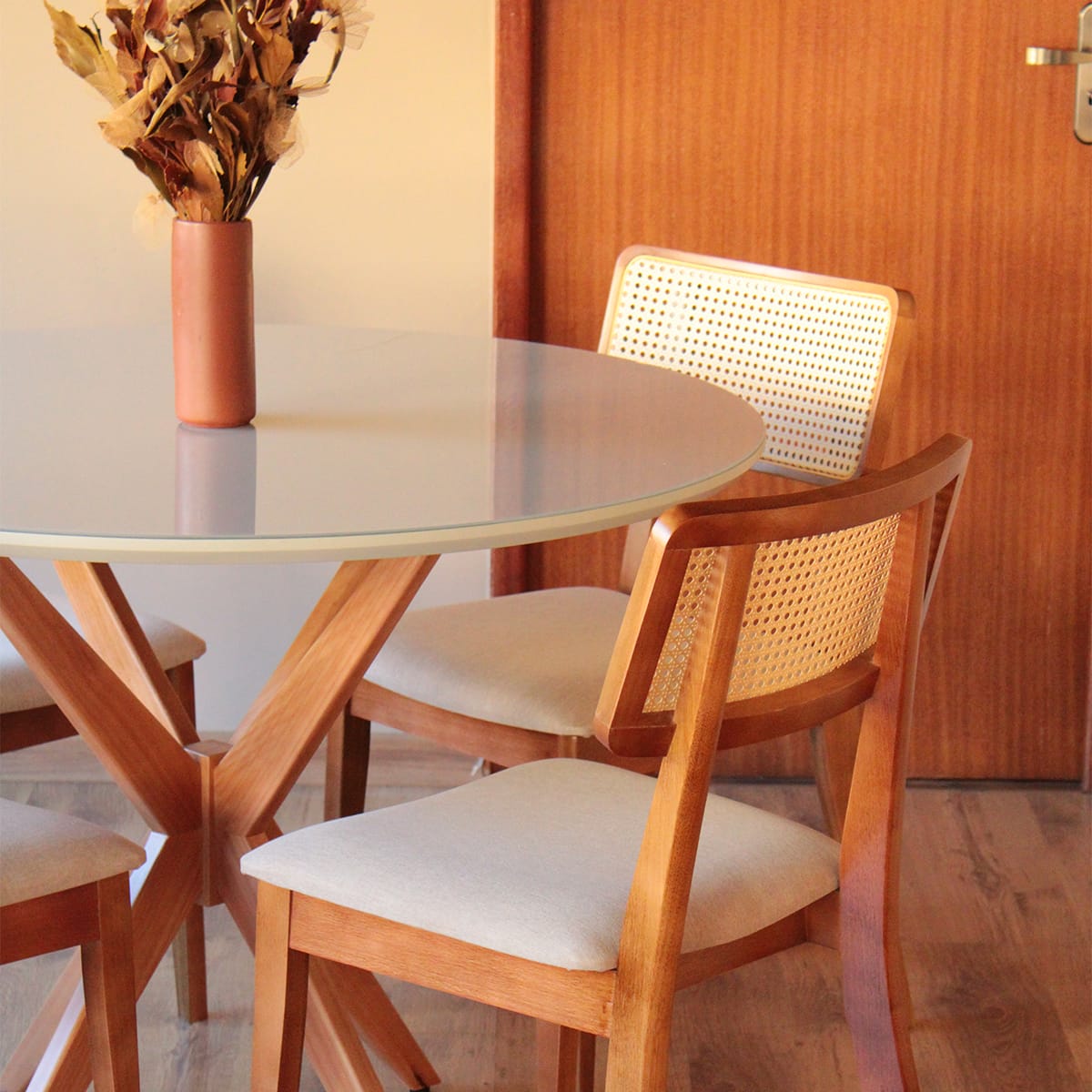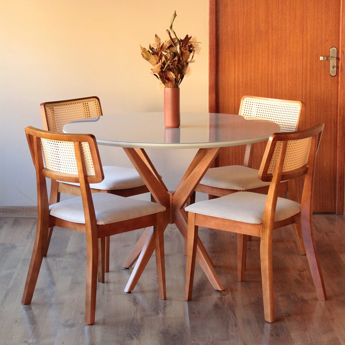 Mesa de Jantar Acassia Tampo Redondo Base Estrelar