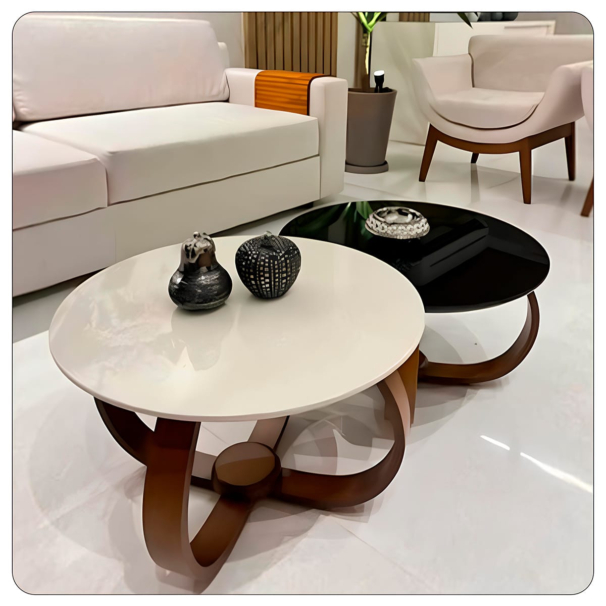 Apresentamos a Mesa Solaris – uma verdadeira obra de arte funcional que vai elevar o nível da sua decoração. Com seu design orgânico, elegante e moderno, ela se destaca em qualquer sala de estar, sendo o centro das atenções com muito bom gosto.