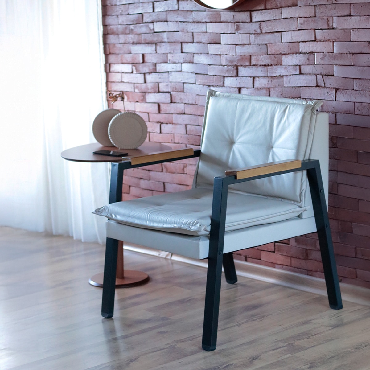 Com design moderno e estrutura marcante, essa poltrona é uma excelente escolha para salas de estar, cantos de leitura, quartos, recepções e escritórios. O contraste entre a Madeira Tauari Natural, os pés em metal com pintura epóxi anticorrosiva e o estofamento bem preenchido cria uma peça versátil, atual e fácil de combinar com diferentes estilos de decoração. É o tipo de móvel que agrega valor ao ambiente sem pesar visualmente o espaço.