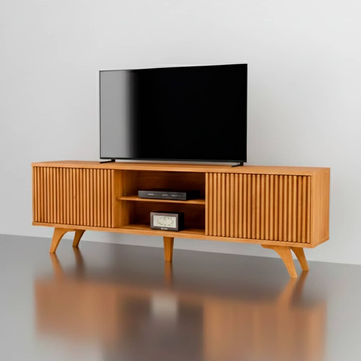 O Rack Gaia é uma peça imponente e elegante, perfeita para quem busca aliar funcionalidade com sofisticação na sala de estar. Seu design contemporâneo, com portas ripadas em MDF e pés de madeira maciça, traz um toque natural e acolhedor ao ambiente. Ideal para acomodar a TV, aparelhos eletrônicos e objetos decorativos, o Rack Gaia é uma excelente escolha para quem valoriza qualidade e estilo no mobiliário.